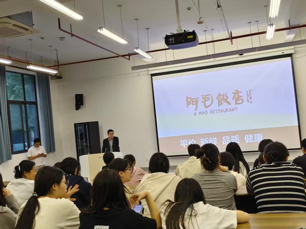 为促进校企合作,搭建优质就业平台,文化旅游学院于10月16日下午成功举办了浙江阿毛饭店专场招聘会。此次招聘会旨在为学院学生提供更多实践机会,同时助力企业吸纳高素质人才,实现双方共赢。此次招聘会由文化旅游学院党总支副书记熊韬主持,全体26届毕业生、各毕业班班主任到场参加。