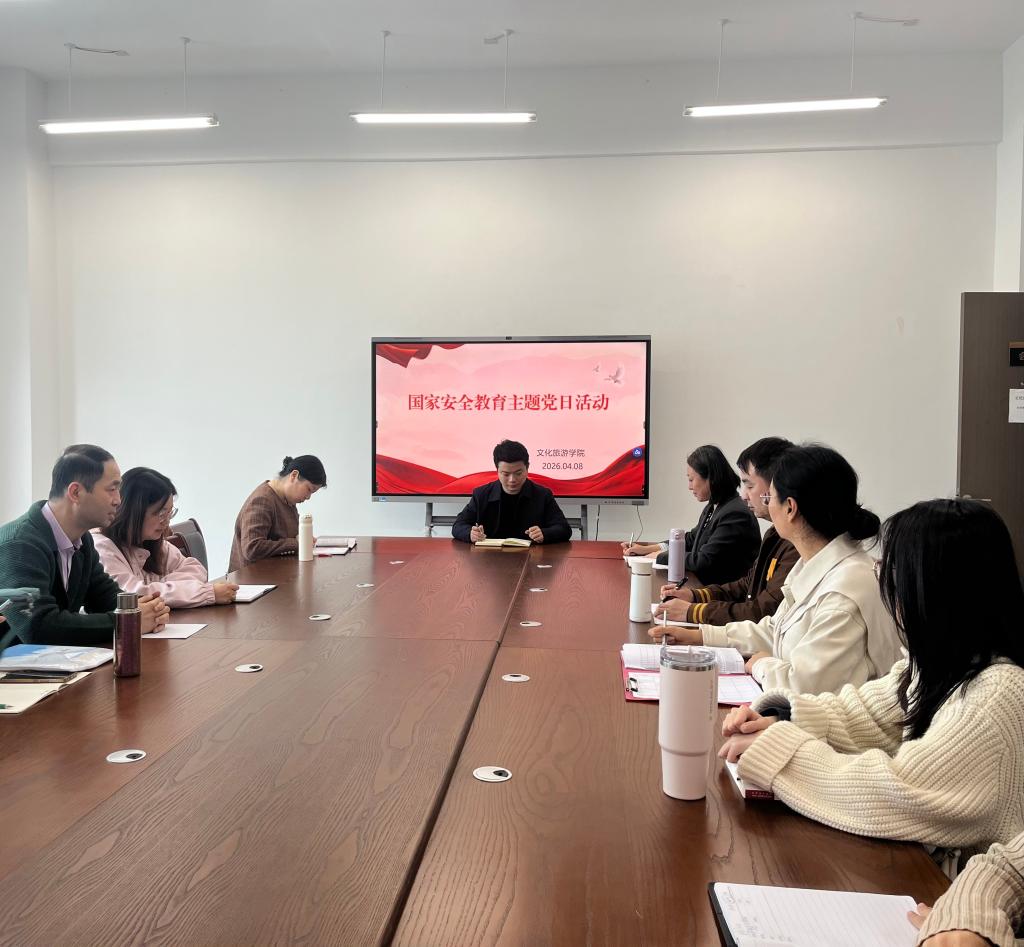为深入学习贯彻总体国家安全观,切实增强全体党员国家安全意识,4月8日,文化旅游学院党总支以“国家安全教育”为主题开展党日活动。活动由党总支副书记熊韬主持,全体党员参加。